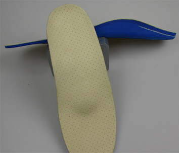 Diese schalenförmige Einlage korrigiert die Fußsohle und stützt den Fuß seitlich ab.